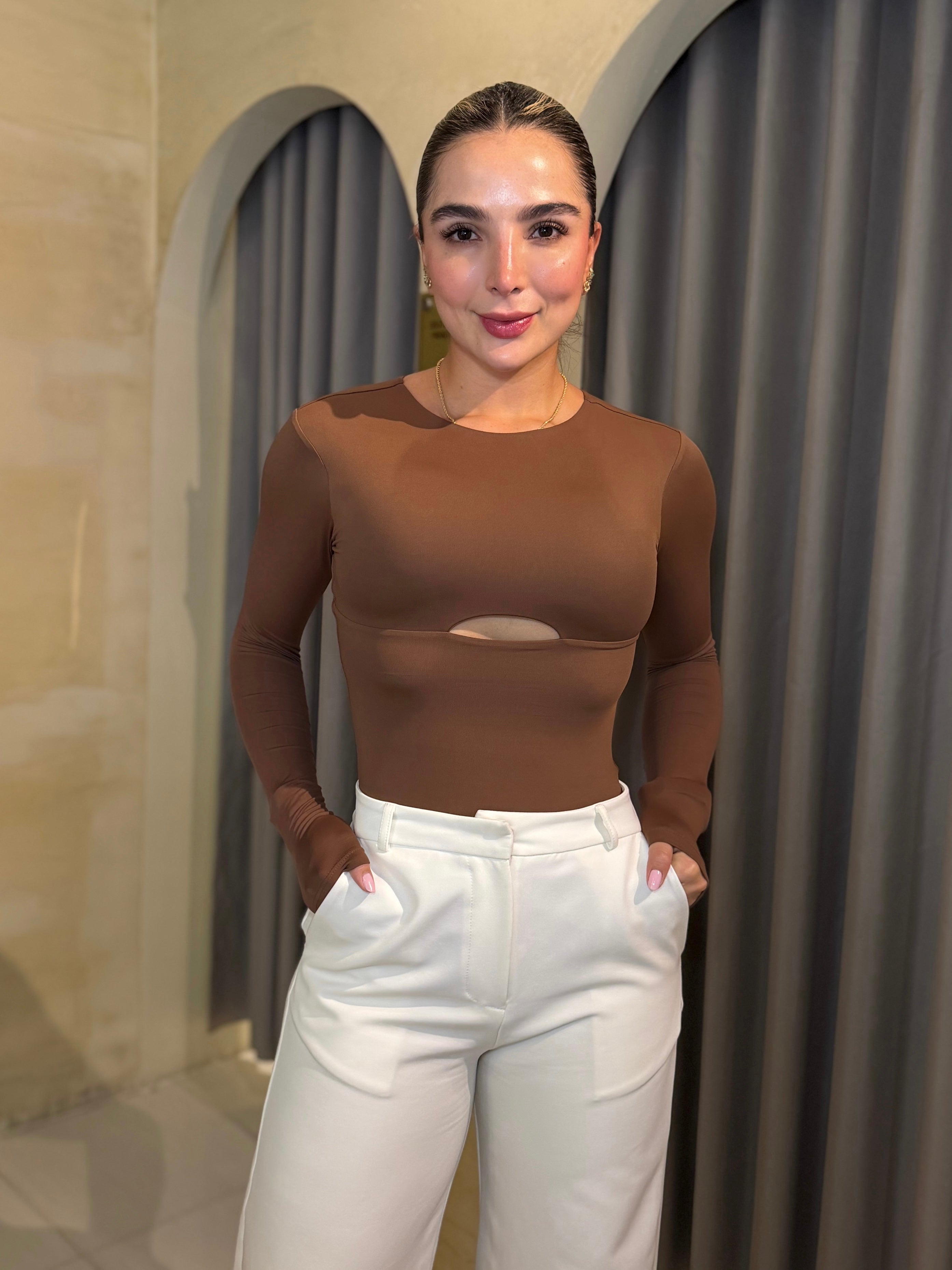 Body hombro diagonal escote delantero cafe