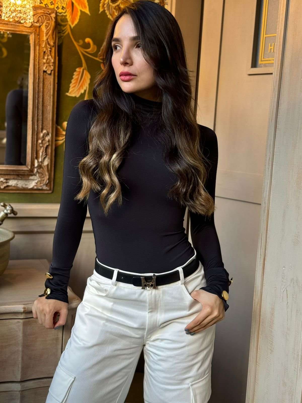 Cuello Tortuga Botones Negro