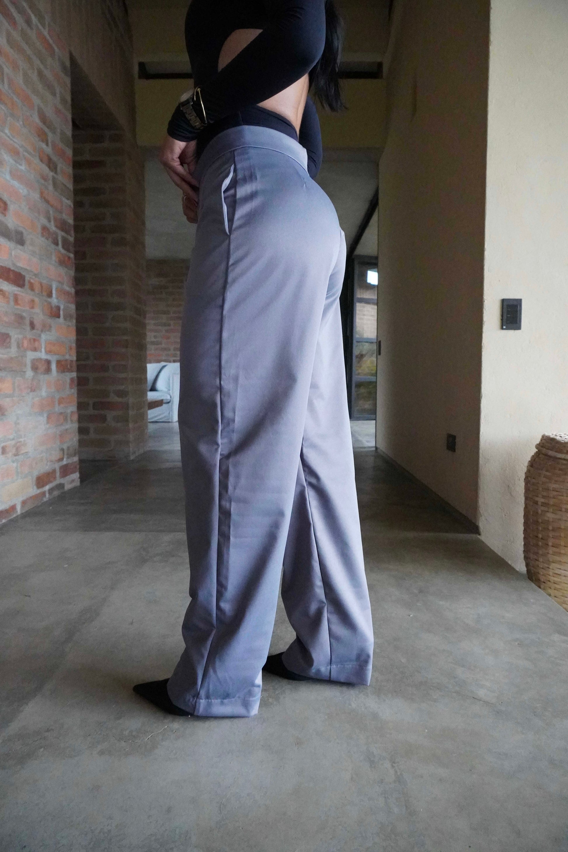 Pantalón asimétrico , bota recta, tiro medio con bolsillos ribete en la parte trasera, elaborado en tela satinada, una base textil fina y lisa al tacto de buen acabado, caída suave y fresca, tela muy cómoda de llevar.