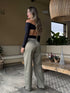 Pantalón asimétrico , bota recta, tiro medio con bolsillos ribete en la parte trasera, elaborado en tela satinada, una base textil fina y lisa al tacto de buen acabado, caída suave y fresca, tela muy cómoda de llevar.